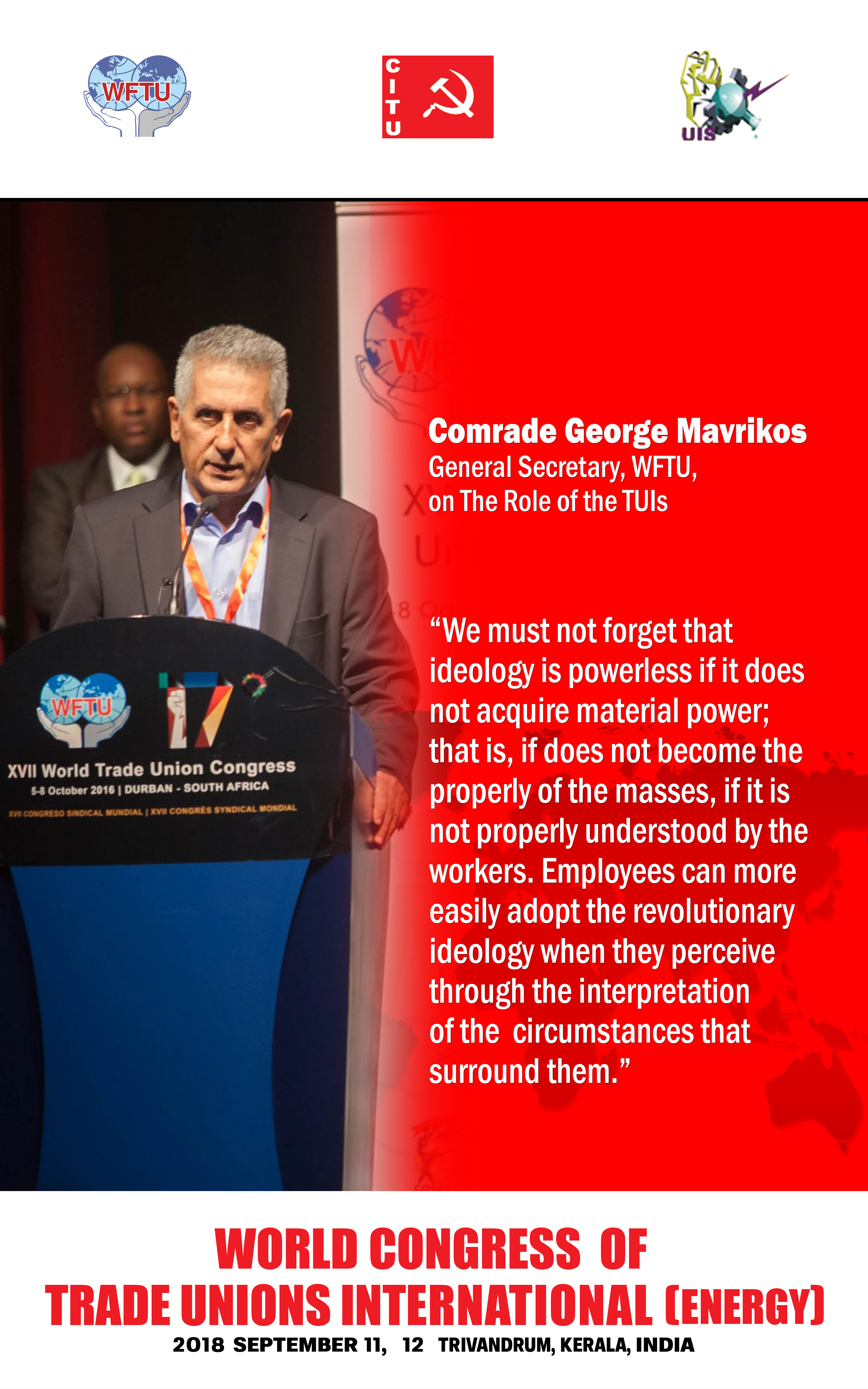 INDIAN ENERGY WORKERS AND CITU HOST 3rd World Congress of TRADE UNION INTERNATIONAL (ENERGY) 11-12 SEPTEMBER, 2018 TRIVANDRUM KERALA